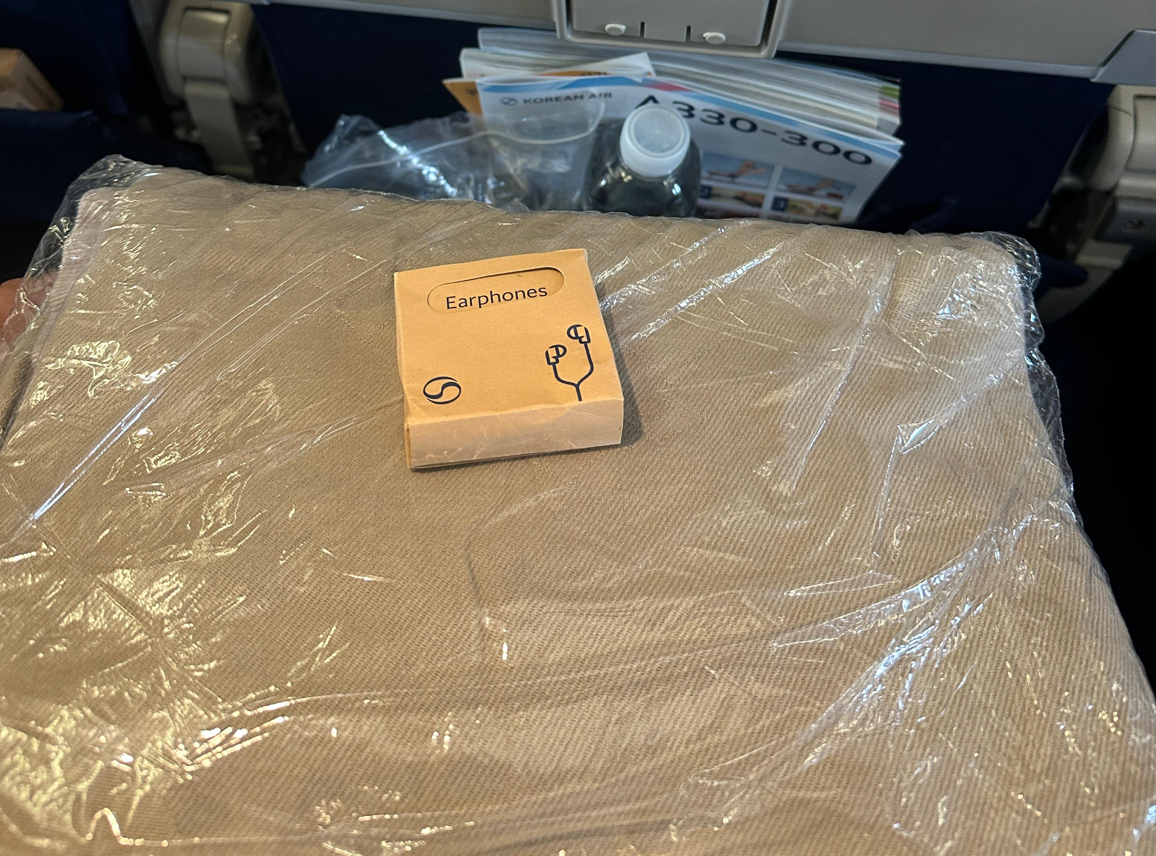 기내 엔터테인먼트도 무난하게 여러 TV 프로그램, 영화 등이 들어 있었습니다. 구비 물품은 이어폰, 생수 한 병, 배게, 담요였습니다. 짧은 비행시간이지만 다들 유용하게 쓰이더군요. ㅎㅎ